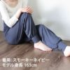 竹から生まれたやさしい繊維TAKEFUを使い、素材、デザインとも極上の快適さを追求したリラックスパンツ。お家でのリラックスタイムやパジャマ、ヨガウェアとして人気のロングセラーパンツです。おなか部分は、綿混のしっかりとしたリブから少し薄めのベア天竺へ変更することで、軽やかでゆったりとしたフィット感がうまれました。わたりを少し大きくしたり、膝周りをゆったりさせたりと、細部の寸法も一から見直して快適さへの工夫を散りばめました。しっとりと滑らかに心地良く、お腹と足元を優しく包む新感覚のリラックスパンツの完成です。■腰は紐で調節可■ウエスト・足首部分はベア天竺■めくれあがり防止に裾をソフトにしぼったデザイン■お部屋で過ごすリラックスタイムや寝間着にカラ―はスモーキーネイビー、スモーキーパープルになります。サイズはM-Lのワンサイズです。「TAKEFU(竹布)について」 TAKEFUは、ソフトで肌触りが良く、抗菌性、消臭性、制電性、吸湿・吸水性、温熱効果を持ち合わせた優れた性質をもっています。汗をよく吸い、体臭を消してくれ、静電気を抑え、摩擦抵抗も少ないため、部屋着や肌着にもってこいの布になります。 TAKEFUは竹原料100%で作られた再生セルロース繊維(レーヨン)です。レーヨンとは木や竹などの植物から作られる繊維で、石油を原料とする合成繊維とは異なります。 ◇お洗濯方法 ・竹布は大変やわらかい繊維です。洗濯機をご使用の際は必ず洗濯ネットに入れ、弱水で洗ってください。 ・乾燥機のご使用はお避けください。縮みの原因になります。 ・漂白剤、蛍光増白剤入りの洗剤及び柔軟剤のご使用はお避けください。 ・ドライクリーニングはお避けください。 ・洗剤は、アルカリ度の弱いものをお使いください。