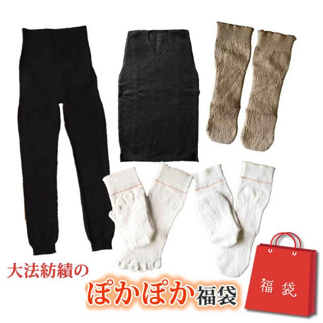 他の画像を見る 【数量限定】大法紡績の冷えとり福袋。MサイズとLサイズよりお選びください 【2026福袋】 大法紡績のぽかぽか 冷えとり福袋 (プレゼント付) 送料当店負担 SALE 定価 ¥ 31,922 のところ ¥ 26,980 税込 詳細を見る お気に入りに登録する