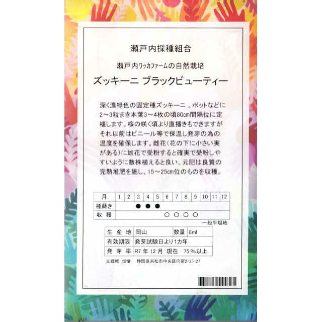 他の画像を見る 数10年採種を繰り返し日本の風土にあった 【国内採種/固定種】ズッキーニ〔ブラックビューティー〕8ml 畑懐〔はふう〕の種【メール便可】 ¥ 660 税込 カートに入れる お気に入りに登録する