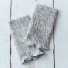 カラーは新色2色が増えて、5種類。生成はカラードオーガニックコットン(茶色の綿花)を使用し、 染色していません。 やや濃いめのベージュになります。ブルー系、グレー系は夏にぴったりの爽やかな色合いです。新色のさくらとハニークリームは可愛らしい明るいお色になっています。外側のリネン部分は、シャリ感しっかりめで、内側のシルク部分はふんわりしています。暑苦しさを感じさせないので、夏におすすめのレッグウォーマーです。