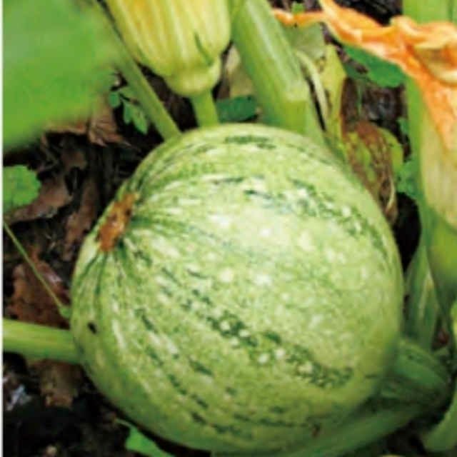 かわいい丸形のズッキーニはフランスの伝統品種。直径6~7センチくらいが収穫のタイミング!大きくなったものはくりぬいて詰め物をして食べるのおすすめ