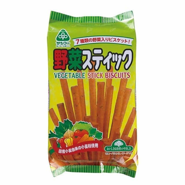 カリッ! ポリッ! 元気においしく、野菜スティック。国内産小麦粉を主原料に、7種類の野菜を生地に入れたスティックタイプのビスケットです。