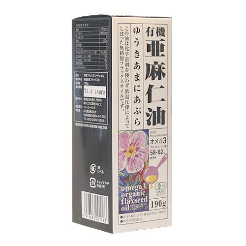 オーガニック・フラックスオイル 亜麻仁〔あまに〕油 190g〔ビン入〕