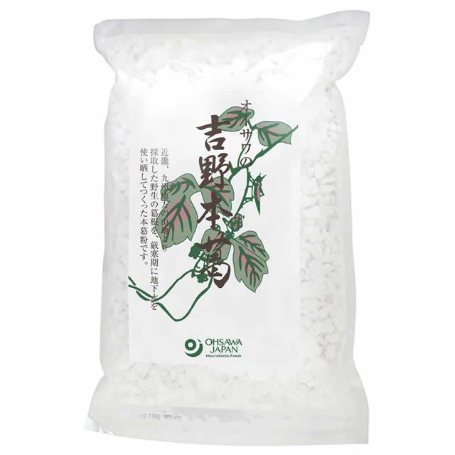 伝統的な「寒晒し」製法でつくられた、良質な国産本葛粉。本葛粉ならではの、なめらかな舌触り。葛湯、葛餅、葛練り、胡麻豆腐、葛きり、あんかけやとろみ付けなどに 。葛湯は、身体を温める飲み物としてもおすすめです。1kgサイズは、オーサワ全商品の中でもTOP10 に入る、人気商品です。■国内産本葛100% ■ブロックタイプ 【葛粉使用レシピ】飴葛湯:〔材料:葛小さじ山盛り1(大さじ2~3の水に入れ、20分間浸水させておく) 、水1カップ 、玄米水飴小さじ2 〕1.小鍋に、葛と水(大さじ2~3)を入れて20分間浸水させる。2.1.に水1カップと玄米水飴を加え、よく混ぜる。3.中火にかけて混ぜながら沸騰させる。静かに混ぜ続け、透き通ってきたら火を弱めて1~2分煮てから止める。4.温かいうちにいただく。