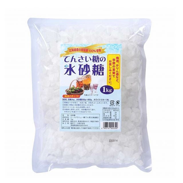 〇北海道産甜菜糖100%使用の氷砂糖です。 〇梅酒、かりん酒、梅シロップ、フルーツシロップなど、季節の果物でお楽しみください。 〇4月〜6月頃までの季節限定品です。【梅酒の作り方(材料)青梅1kg 氷砂糖500g〜800g ホワイトリカー1.8L】 1.青梅はへたを取り、水洗い後、水気をよく拭き取ります。2.容器に青梅と氷砂糖を交互に入れます。3.ホワイトリカーを注ぎ密封します。4.冷暗所に保存します。氷砂糖が全て溶け、半年から1年漬けてできあがりです。