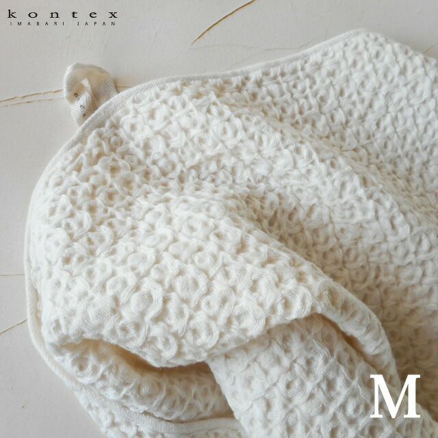 リネンの持つ清涼感と、オーガニックコットンのナチュラルな雰囲気が心地良く調和した上質なワッフルタオルです。素材が持つ本来の色を生かして清涼感と気品あるピュアネスを大切にしました。全てのサイズにkontexのネーム入りハンギングループが付いているので、フックに引っ掛けてお洒落にお使いいただけます。ループが大きいのでいろんな場所に引っ掛けられ、また吊るしても床につかないよう長方形の真ん中にループを付けています(M、L、XLサイズ)。ワッフルのデザイン主張しすぎないオシャレ感があり、どんなお部屋とも相性が良いワッフルタオルです。生地感パイルたっぷりのふっくらタオルに比べて、リネンも入っているので少し生地はしっかりめです。顔や髪をふくタオルとして使う場合、女性には少し硬めに感じられるかもしれません。吸収性や乾きは良いので、台所やバスルームのハンドタオルとして大変おススメです。