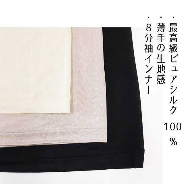 他の画像を見る 高品質ピュアシルク100%のシルクニットインナー マリーネ 正絹シルク100% 8分袖インナー 〔天竺編み〕 送料当店負担 新色追加 ¥ 8,580 税込 カートに入れる お気に入りに登録する