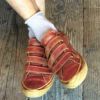 小さいころからつくることが好きだったというmokonoの竹岡さん。2010年 自宅近くの老舗のくつ下工場との出会いから「クネクネくつ下」を制作。春、秋とシーズンごとに新作を企画しています。
