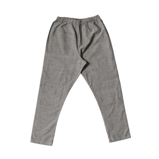 久留米絣(くるめかすり)を現代風に仕立てあげ、カジュアルな日常着にしました。伝統工芸である久留米絣を現代風の型で仕立て上げたもんぺです。綿100%で風合いある生地は、履き心地抜群。使ううちにどんどん肌になじんでいきます。 昔ながらの「もんぺ」は腰回りがゆったりした農作業着のイメージがありますが、こちらは腰回りをスッキリさせ細身にし、日常の服と馴染みやすくしています。動きやすさはそのまま♪洗濯機でざぶざぶと洗えて、乾きが早いのでお手入れが簡単です。作業着はもちろん、カジュアルな普段着として着ていただけます。生地の厚さは、ベーシック(薄手)になります。ベーシック:涼しく、着心地が抜群の生地です。春~秋頃が最適。ディティール腰紐と裾ゴム付きで、ウエストの調節や裾の形を変えることができます。裾をしぼっても、折り曲げても、そのままでも♪前右側にパッチポケットがあり、ちょっとした小物を入れるのに便利。膝周りの内側にはひざあてがあり、生地が薄くなりがちな部分を補強しています。170cmの男性でもS、M、Lと履けていますが、膝下が特に細めの形をしています。運動をしている方などはふくらはぎがぴったりになる場合が多いので、ワンサイズ上をおススメしております。山で! 海で! 畑で! 旅で!吸水性、速乾性にたけているMONPE。もともと農作業着として発展してきたもので、 その機能はお墨付きです!家庭菜園や庭いじりなど 機能性、着心地ともに最高です。ちょっとした運動やウォーキングにも適しているので、山や海などのアウトドアにもおススメなんです。こちらは、Mujiベーシックではありませんが、参考までに。クルクルと丸めたら小さく収まるし、 洗って干してたらすぐ乾くしで、旅にもぴったりのMONPE。さあ、あなたもMONPEを履いてボン・ヴォヤージュ!カラー 全7色やっぱり無地が基本。ベーシックな色を7色揃えました。Mサイズ重さ180g。