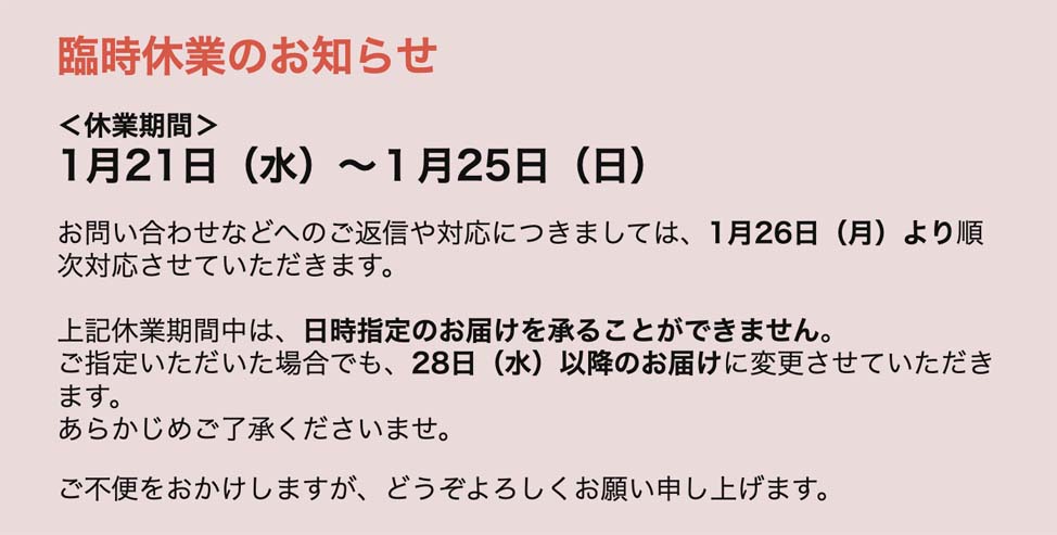 商品の品質につきましては、万全を期しておりますが、万一不良・破損などがございましたら、商品到着後7日以内にお知らせください。返品・交換につきましては、1週間以内、未開封・未使用に限り可能です。