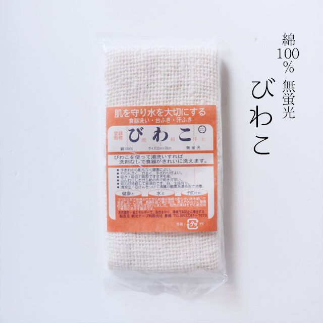 ★びわこふきん サイズ32cm×35cm食器洗い用ふきんです。軽い汚れならお湯で洗うだけで落ちてしまいます。使用後はよく絞って乾燥させましょう。★和太布〔わたふ〕 サイズ34cm×55cmふきんとして使ってみてください。吸水性に優れ、乾きも早いため「びわこふきん」で洗った後、「和太布」で拭くとベストです。タオル、手拭いなど多目的に使われています。★びわこα(アルファ) サイズ35cm×100cm浴用です。石けんを使わずにお風呂で身体を洗ってみてください。皮膚の弱い方、冬場になるとかゆみの出る方に。柔らかく凸凹した布が、適度なマッサージになり、お肌を元気にします。製造時に、薬剤を使っていないので、敏感肌の方やアトピーのお子さんも安心してお使いください。 ※布の目の粗さは和太布が一番細かく、次にびわこアルファ(浴用)、和布びわこが一番粗くなっています。