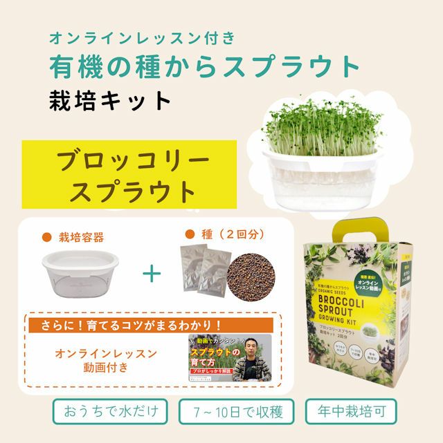 ブロッコリースプラウト栽培キット オンラインレッスン動画・有機の種付き